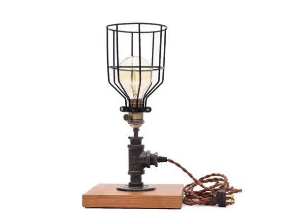 The American Made Allentown Lamp brightens any desk or area with its unique style and shine. The Allentown has an antique, industrial style look to it. It's all bulb and cage and metal. Features a brass light socket and bulb cage.