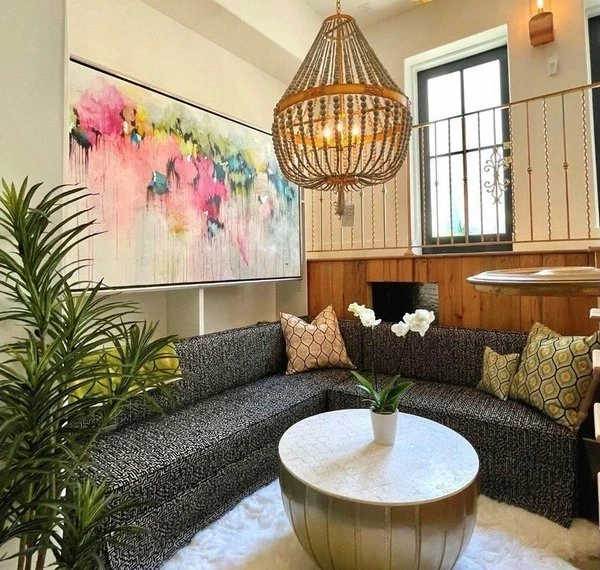 With stylish crystals and natural hemp accents, this unique piece is sure to transform any room into a fashionable masterpiece. Perfect for the entryway in your home, dance studio, bank, church, you name it!