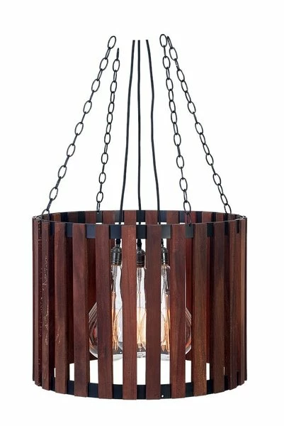 The American Made – Division Chandelier is built in two sizes and two choice woods: Plantation Teak or Rosita Walnut. Each wood type has two finish choices, so match your current rustic or industrial chic decor is a breeze. The large Edison bulbs are included and pair perfectly with the barrel art style.