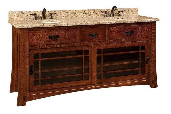 Amish 72" Portland Double Bathroom Vanity Cabinet with Inlays