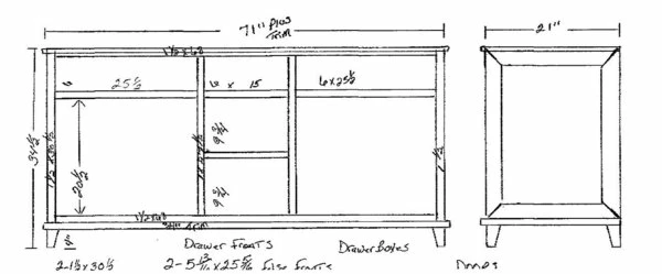 We would take the design of the 60" Amish Big Country Vanity (which can be found here) with an extra six inches of width added to each of the outside drawers.