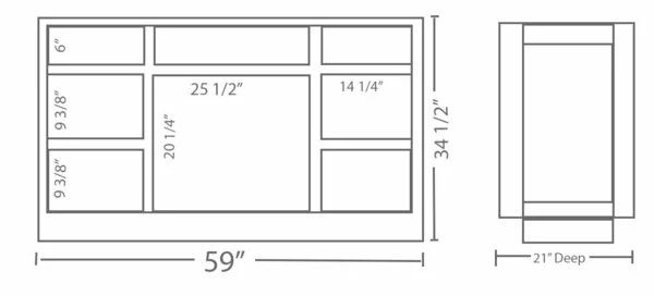 The 35" model is a similar layout to the larger versions with 11" wide drawers and a 20" cabinet space. If your sink is placed in the center of the countertop then both of the top drawers may be relegated to decorative, leaving you with two functional drawers.
