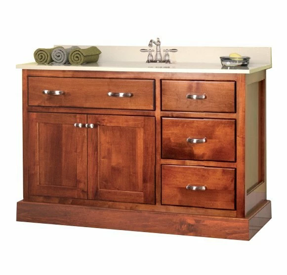 Here are pictures of vanities in different wood/stain styles to help you visualize the different layouts depending on the size of vanity you choose for your Amish Breckinridge Bathroom Set.