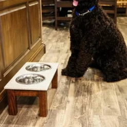 Fetching Factor: Our handcrafted dog feeder bowls combine premium solid wood with a Corian top, creating a feeding station that is attractive and will enhance the decor of the room.
