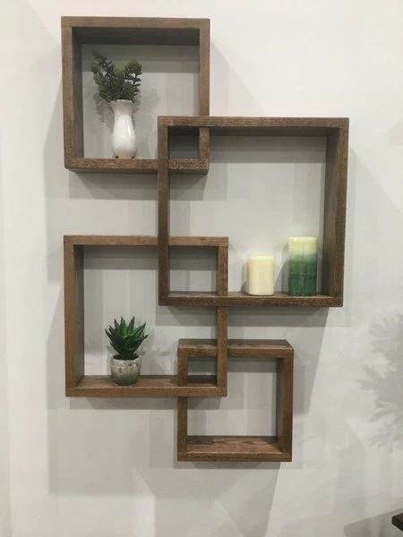 The Amish Elkanen Shadow Box is the perfect mixture of Amish craftsmanship and modern style. 4 interlocking boxes meet at interesting angles to create a work of art for your wall. Hand-built from Oak wood and stained in five different finishes to choose from, this shadow box is easily customizable for any space.
