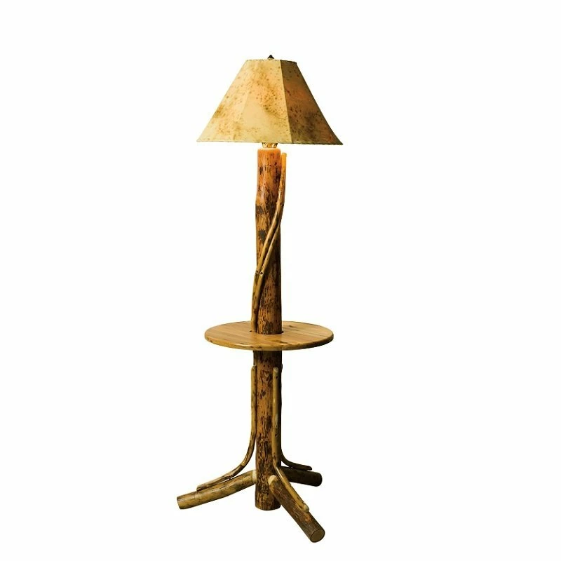 Amish Floor Lamp with Shelf & Lambskin Shade
