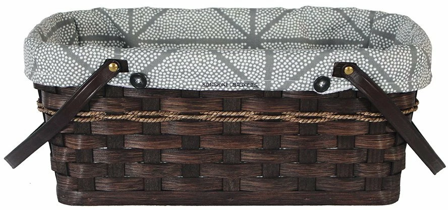 Available in twelve different colors with a variety of fabric liners to choose from, this handcrafted basket measures 19" x 8" x 13".