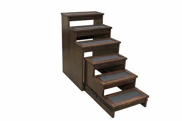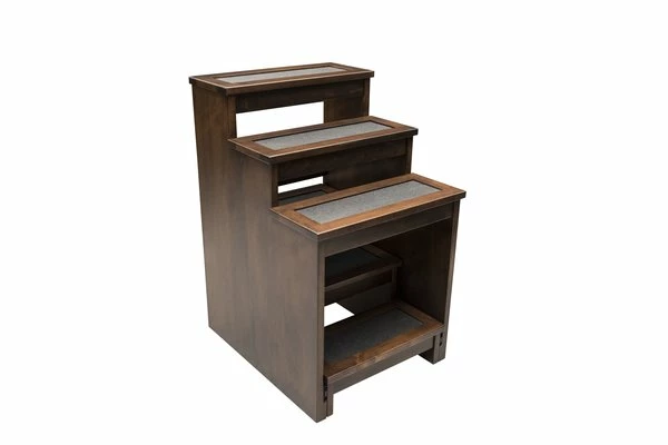 The Amish Pet Steps are stylish too! Choose your wood and stained finish. These pet steps are handcrafted with solid wood and will not detract from the look of the room.