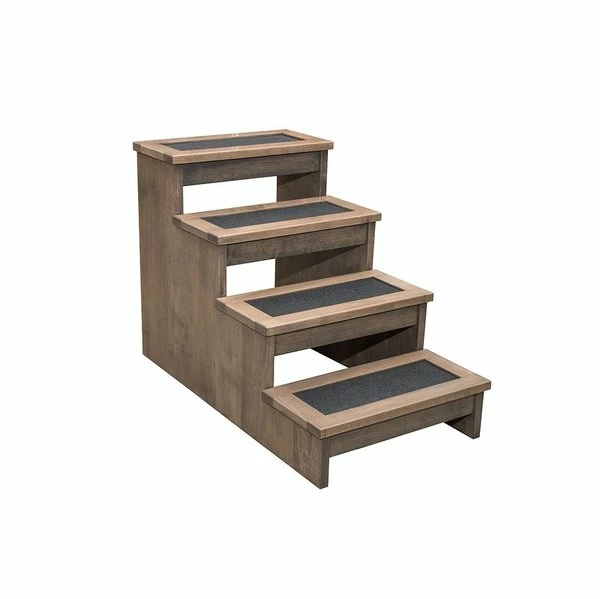 Our Amish Pet Steps are available in red oak, brown maple, quarter sawn white oak or cherry wood. Customize with the combination that works best for you. These pet steps are available with two, three or up to four steps to serve you best. Non-slip treads set in the beautiful solid wood ensure a safe climb to the top of the bed.
