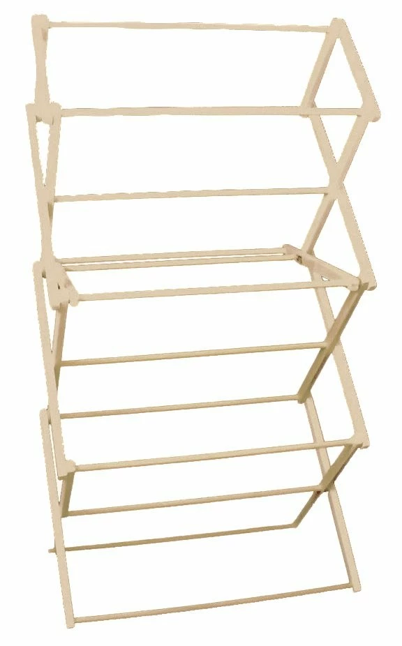 Durable, natural solid wood rods will support your drying laundry when you add the Medium size Adjustable Drying Rack to your home. This compact and collapsible design provides nearly 30 feet of drying space over its 10 rods! Made by Amish woodworkers in Indiana and delivered to your home anywhere in America.