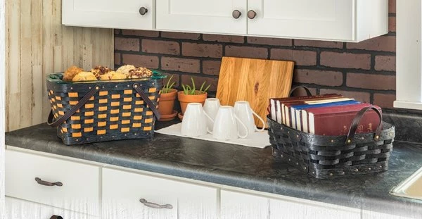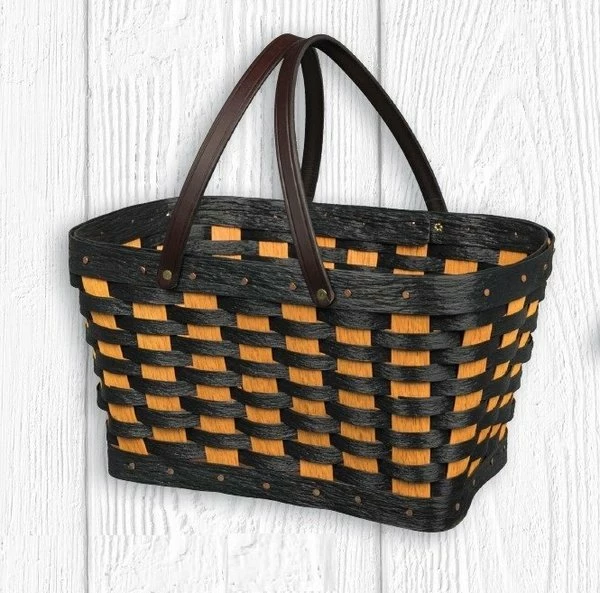 The Market Basket is shown here with an optional brown checkered fabric liner. Choose from a variety of liners along with fun colors for your basket. We offer neutrals and brights for this beautiful basket. Amish craftsmen weave these baskets from material made of recycled plastic. This is the perfect gift for a friend who has gone green.