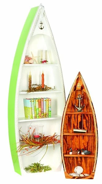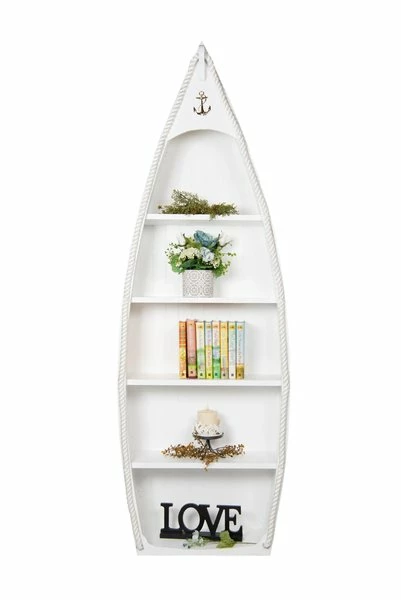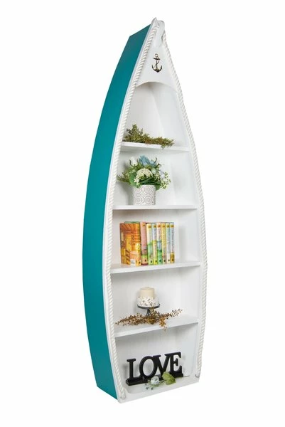 Enjoy this classic, nautical theme piece in your home. Perfect for home office spaces, entryways, bedrooms, living rooms and more! Standing 4' and 6' tall, this rowboat shaped bookshelf will make a big statement in your home. Features several shelves that can hold books, décor, knick-knacks and other pieces you want on display.