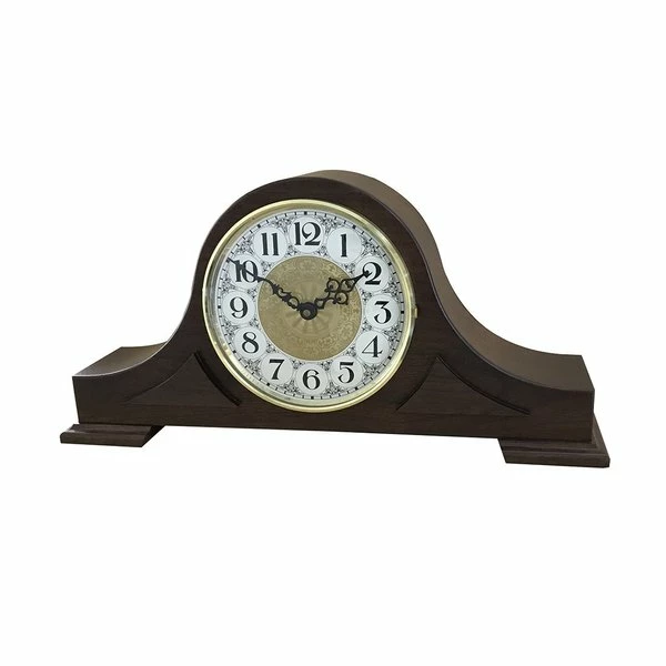 The Amish Tambour Clock is carefully carved, with the wood sculpted in a curve around the clock face. Features of this mantel clock include: