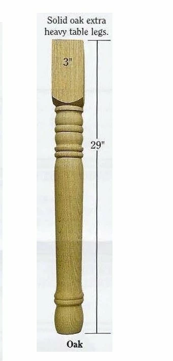 Furnish your dining table with the best parts out there! These Amish-crafted table legs promise sturdy, stylish meals and gatherings. This Extra Heavy Leg is intended to support larger tables or suit your preferences for bold design. Each leg measures 3" by 3" by 29" high. Choose from a wide variety of woods, including specialty options. Call with questions or a quote for non-standard wood options.