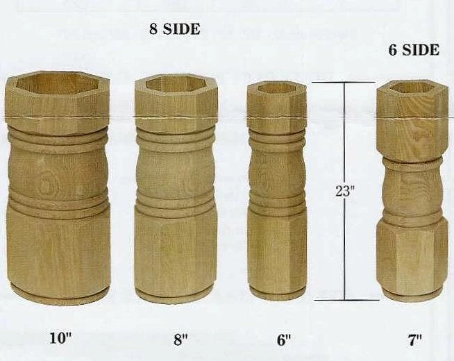 Choose from a variety of solid woods. This pedestal table column is available in the following wood options: Oak (Standard), Knotty Pine, Cherry, Alder, White Ash, Mahogany, Hickory, Quarter Sawn Red Oak, Maple and Black Walnut. We also can custom build columns in Tiger Maple, Genuine Mahogany, Sapele Mahogany, Santos Mahogany, and Teak. Custom-built 12" Octagon Columns with thick side walls also available upon request. Please call for a quote on special wood or wall options.