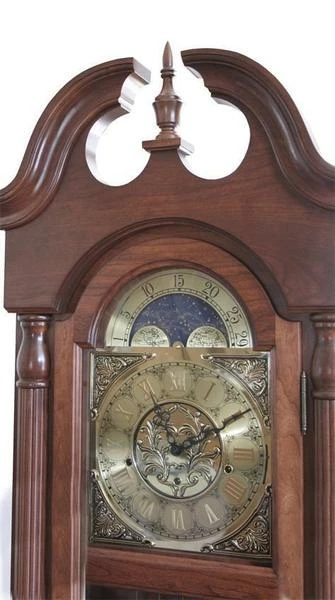 Grandfather Clock Dimensions Height: 79" Width: 22" Depth: 12 1/2" Wood: Red Oak Cherry (Shown) Rustic Cherry Brown Maple Elm Hickory Walnut Chimes: Westminster