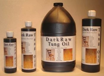 Dark Raw Tung Oil builds quickly, consolidates the wood surface and builds a dark matte finish. It should be kept in an airtight container with minimum air space.